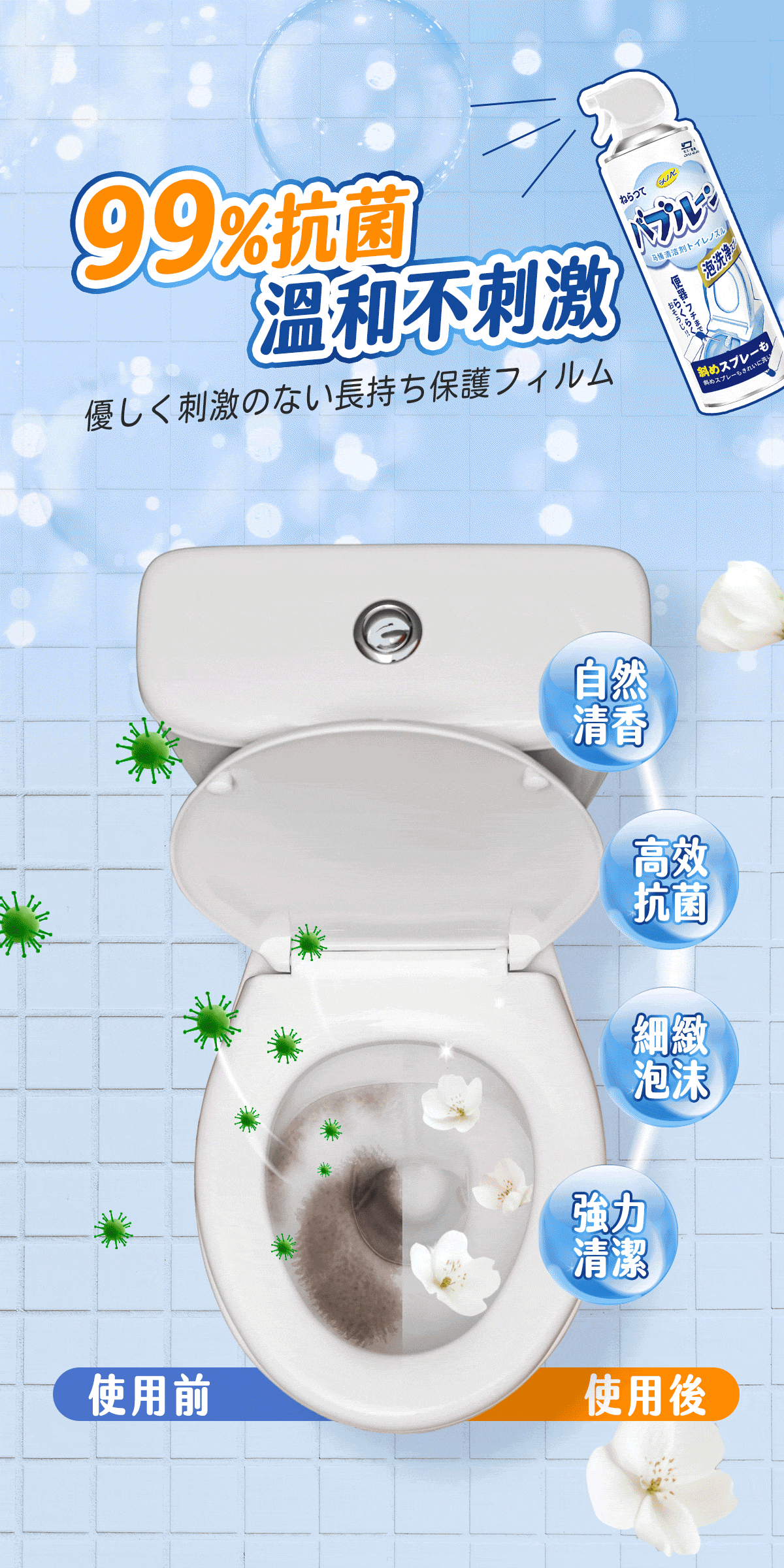 2分鐘前雪泡淨浴廁清潔慕斯 ,馬桶不刷也能亮 , 浴室清潔一瓶搞定 - 【買五送三】【MokoClean雪泡淨】8入組,團購好友分享 免運 NT$1299